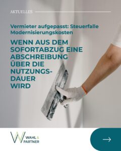 Bei Vermietung aufgepasst; nicht immer führen Modernisierungsarbeiten zu sofort abzugsfähigen Werbungskosten…