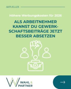 Gute Nachrichten an Mitglieder von Gewerkschaften: Ab 01.01.2026 können Gewerkschaftsbeiträge als Werbungskosten zusätzlich…